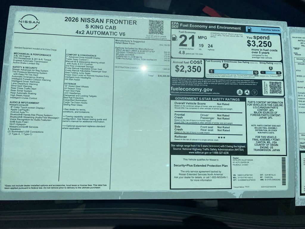https://research.avnissan.com/cars/New/2026/Nissan/Frontier/S/166251192026 Nissan Frontier S