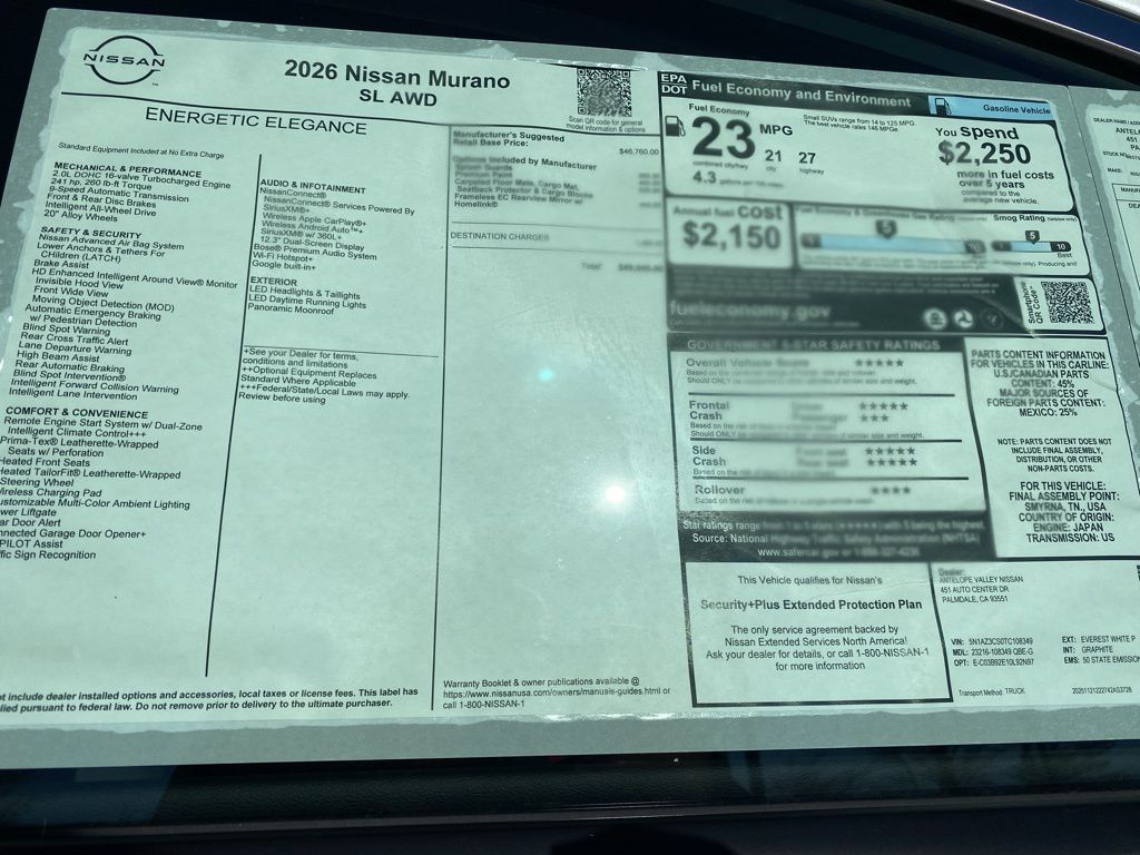 https://research.avnissan.com/cars/New/2026/Nissan/Murano/SL/167621522026 Nissan Murano SL