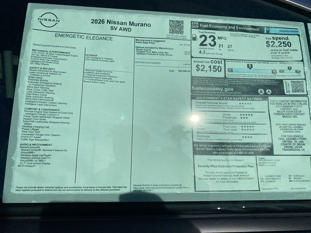 https://research.avnissan.com/cars/New/2026/Nissan/Murano/SV/168283632026 Nissan Murano SV