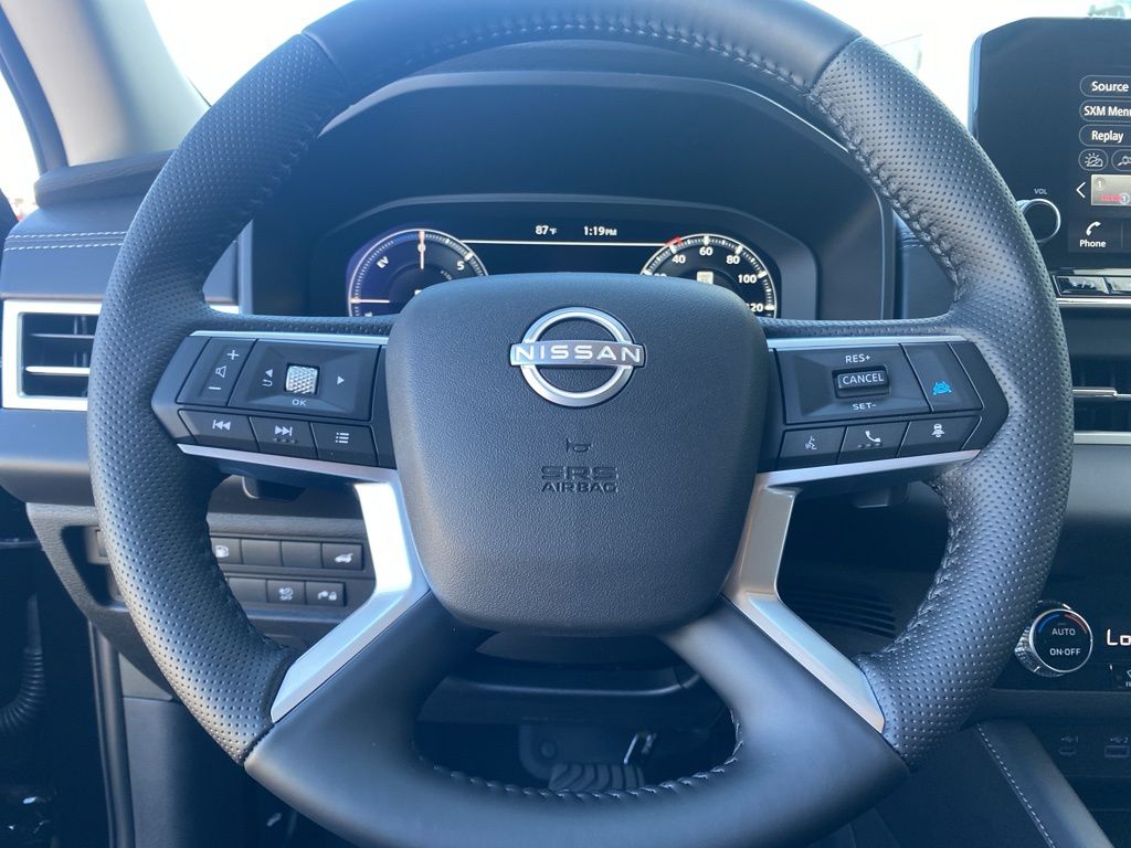 2.4L 4-Cylinder DI DOHC, AWD, Bluetooth, NEW MODEL, 3rd row seats: bench, ABS brakes, Active Cruise Control, Alloy wheels, Auto High-beam Headlights, Compass, Electronic Stability Control, Emergency communication system, Front Bucket Seats, Front dual zone A/C, Fully automatic headlights, Headlight cleaning, Heated door mirrors, Heated Front Seats, Heated front seats, Illuminated entry, Low tire pressure warning, Navigation System, Navigation system: NissanConnect with Navigation and Services, Power Liftgate, Rain sensing wipers, Rear reading lights, Rear seat center armrest, Rear window wiper, Reclining 3rd row seat, Remote keyless entry, Security system, Spoiler, Synthetic Leather Seat Trim, Traction control, Turn signal indicator mirrors.