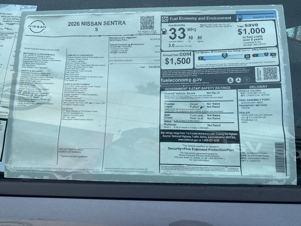 2026 Nissan Sentra S at Antelope Valley Nissan