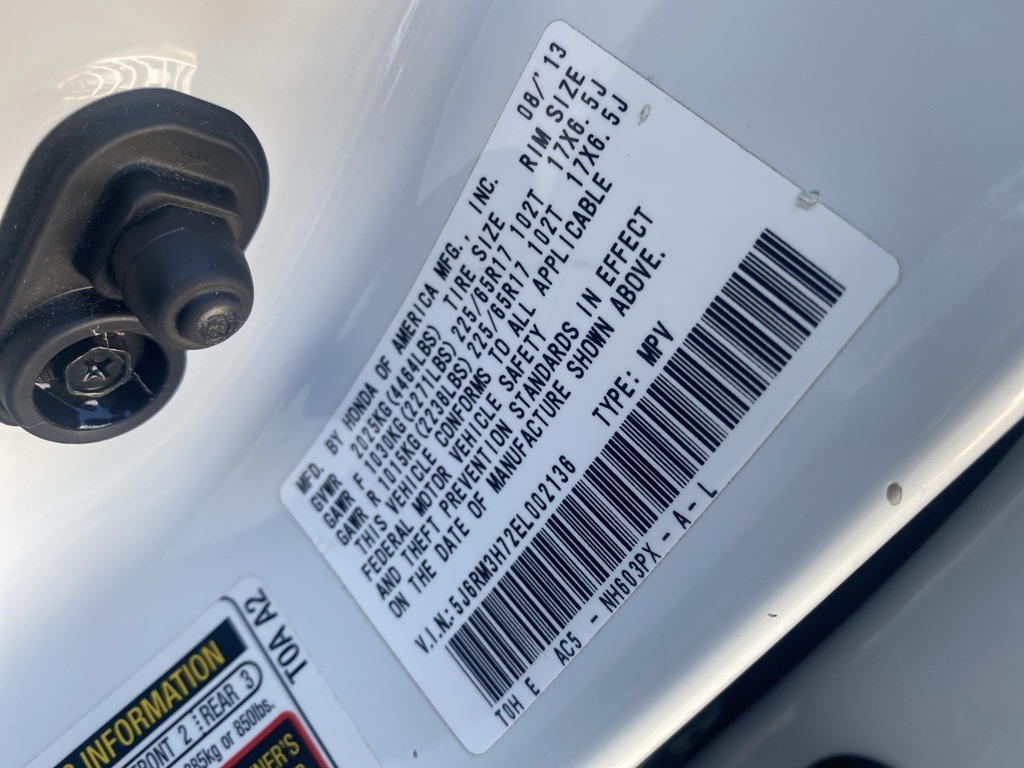 - VIN : 5J6RM3H72EL002136