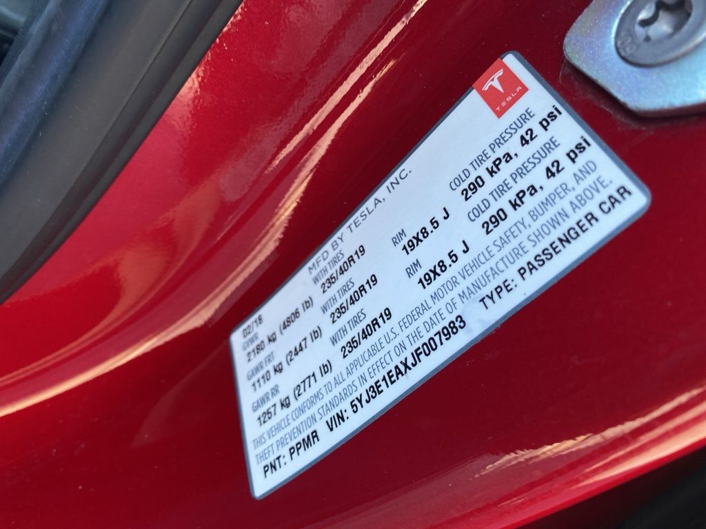 - VIN : 5YJ3E1EAXJF007983
