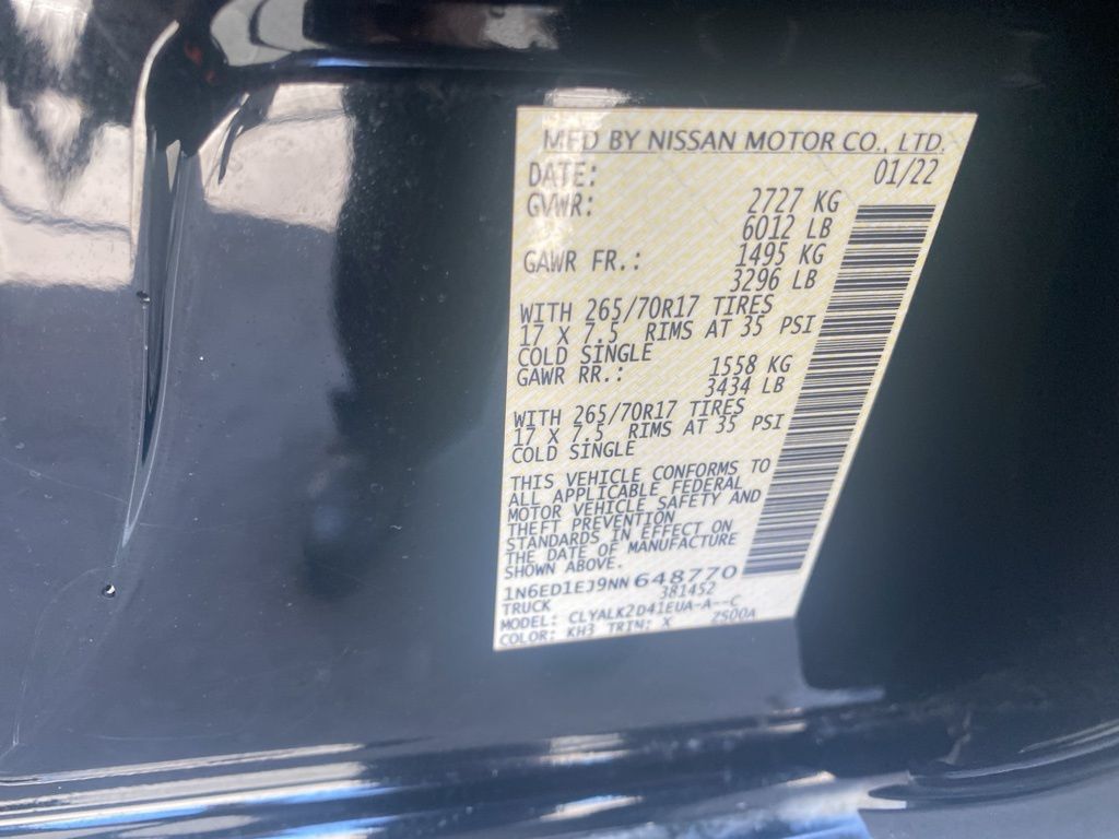 - VIN : 1N6ED1EJ9NN648770